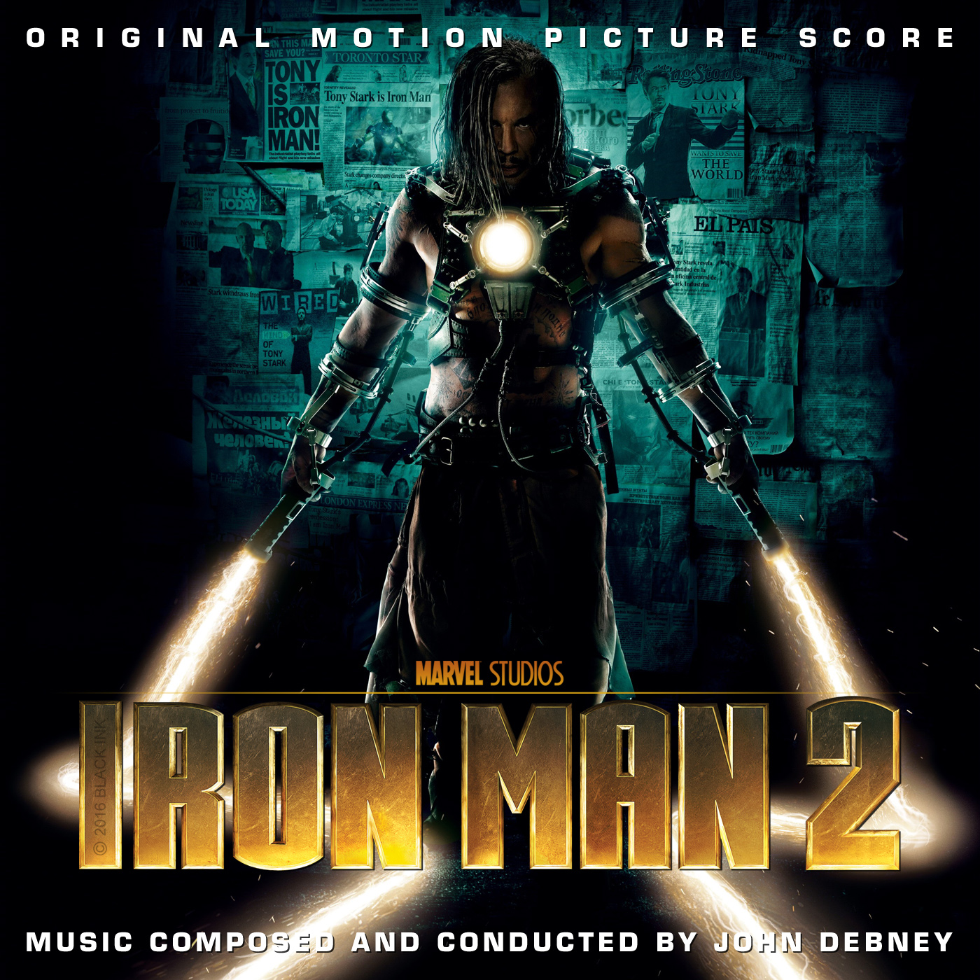 The film score was released commercially as Iron Man 2: Original Motion Picture Score on July 20, 2010, featuring 25 tracks. John Debney composed the score with Tom Morello, with composer Richard M. Sherman of the Sherman Brothers contributing the Stark Expo theme song, “Make Way for Tomorrow Today”.