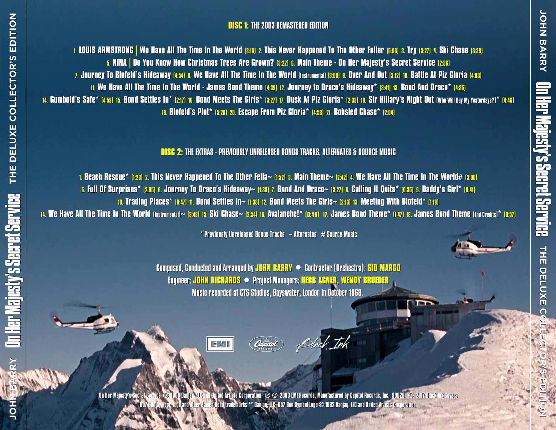 The theme, “On Her Majesty’s Secret Service”, is used in the film as an action theme alternative to Monty Norman’s “James Bond Theme”, as with Barry’s previous “007” themes. “On Her Majesty’s Secret Service” was covered in 1997 by the British big beat group, the Propellerheads for the Shaken and Stirred album. Barry-orchestrator Nic Raine recorded an arrangement of the escape from Piz Gloria sequence and it was featured as a theme in the trailers for the 2004 Pixar animated film The Incredibles.