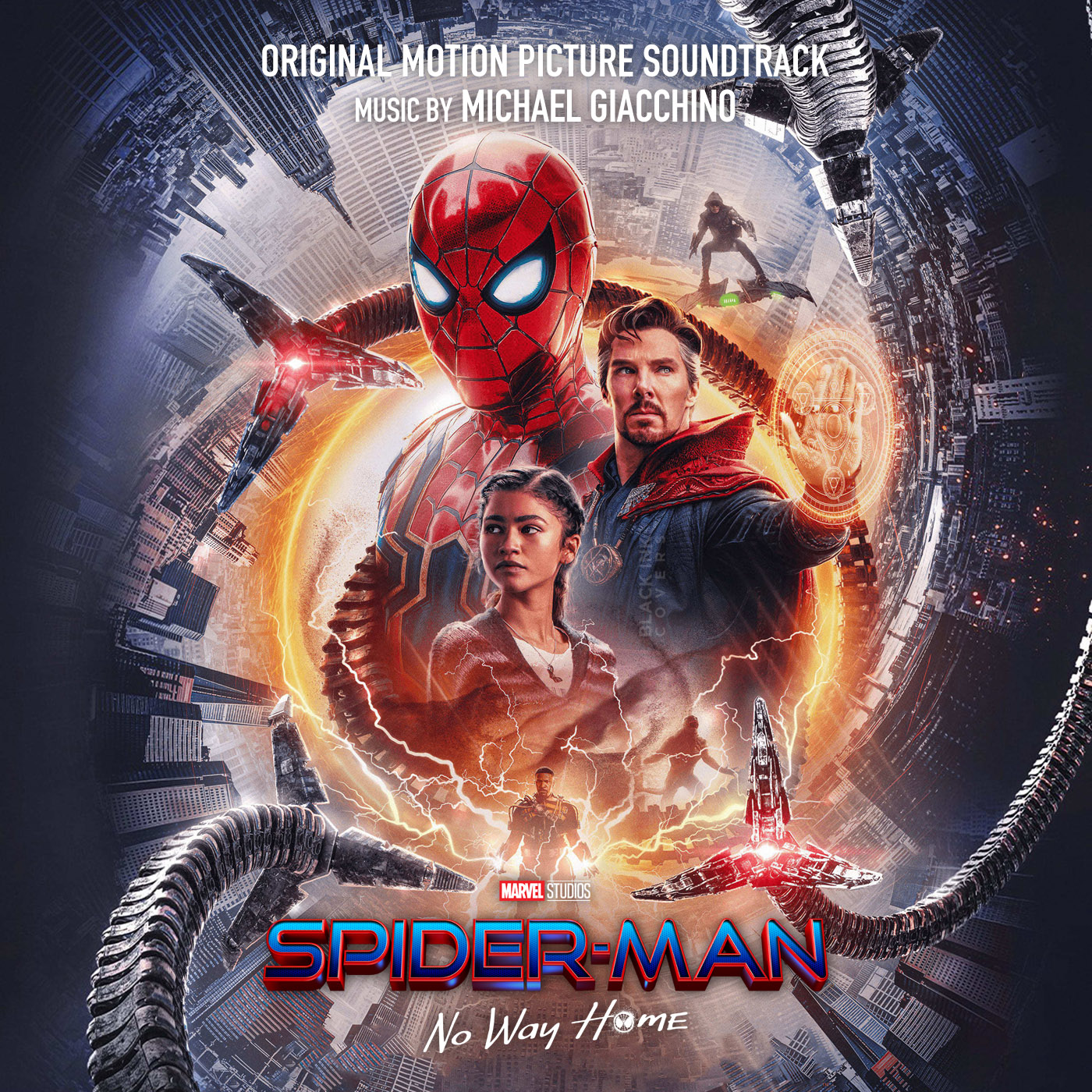 Spider-Man: Homecoming and Far From Home composer Michael Giacchino was confirmed to score No Way Home in November 2020. On December 9, a single titled “Arachnoverture” was released, with “Exit Through the Lobby” being released the following day. The soundtrack also features music from previous Spider-Man soundtracks by other film composers including Hans Zimmer, James Horner and Danny Elfman, as well as Giacchino’s theme for Doctor Strange.