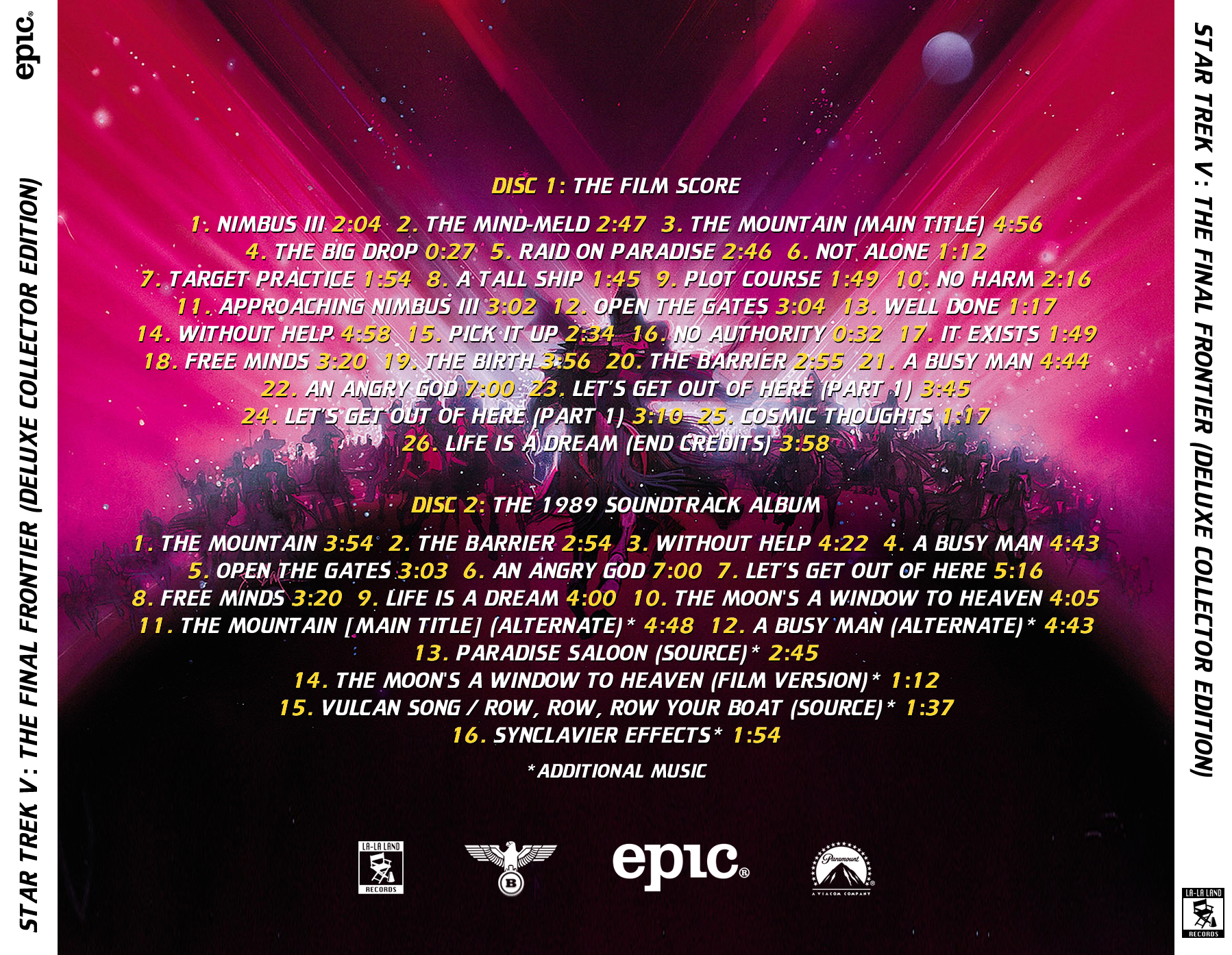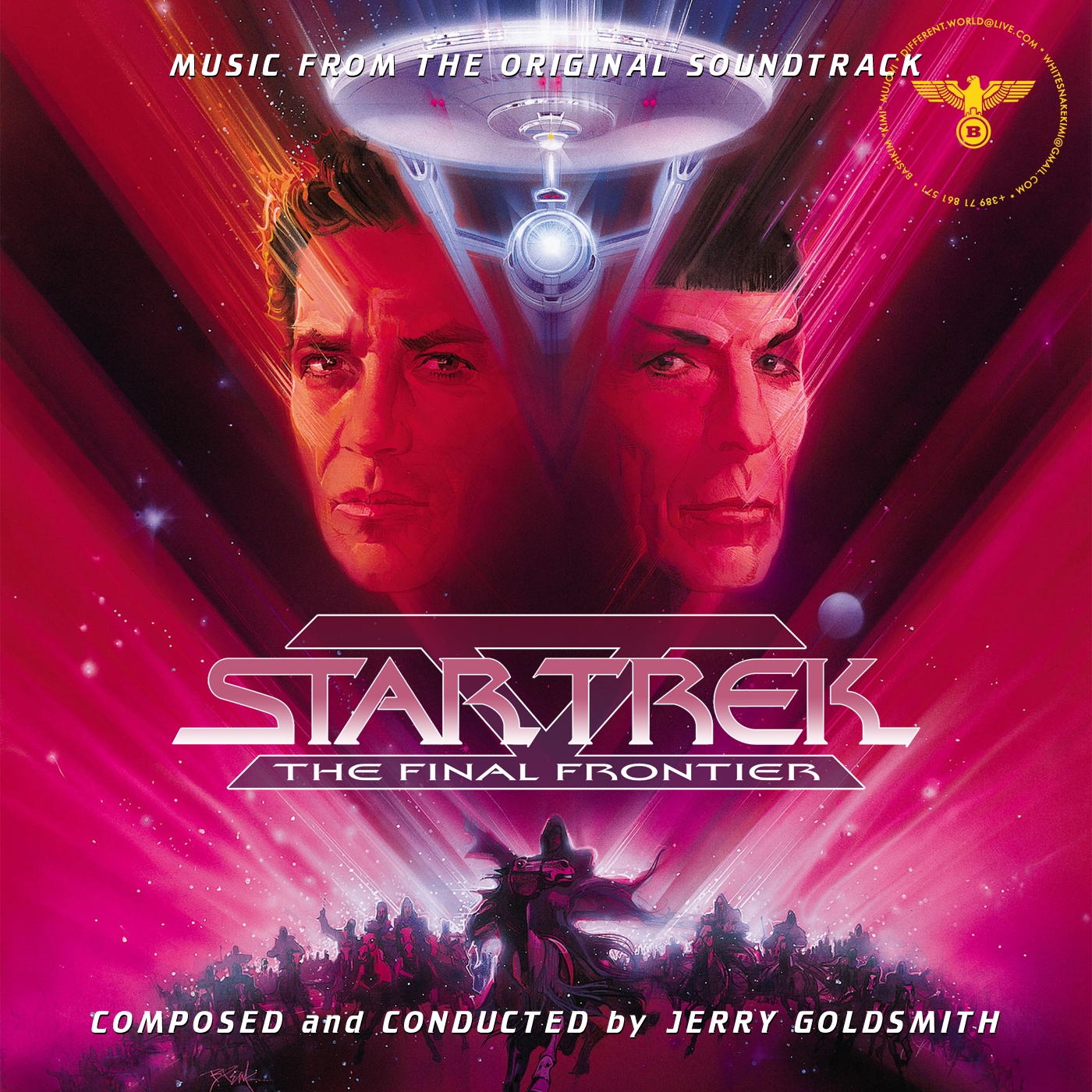 Music critic Jeff Bond wrote that Shatner made “at least two wise decisions” in making The Final Frontier; beyond choosing Luckinbill as Sybok, he hired Jerry Goldsmith to compose the film’s score. Goldsmith had written the Academy Award-nominated score for Star Trek: The Motion Picture, and the new Trek film was an opportunity to craft music with a similar level of ambition while adding action and character—two elements largely missing from The Motion Picture. Goldsmith did not want to accentuate the film’s comedy with music, feeling it would “[take] drama to the point of silliness”. He focused on the God planet as his most difficult task.